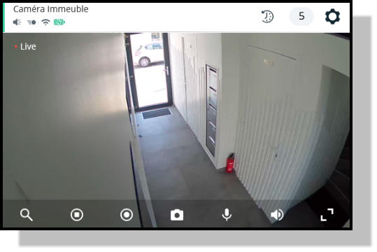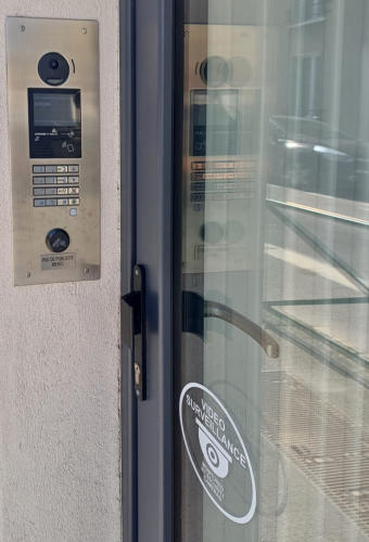 Le hall de l'immeuble est surveillé par une caméra de sécurité.The lobby of the building is monitored by a security camera.