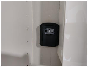 - When entering the building, first door on the left.- In the room, on the left is the electrical cabinet- In this cabinet on the left side there is a small black chest. You will have to enter the code 1998 and press the small button on the left to open it.One set of apartment keys will be inside the safe and a second set of keys will be on the kitchen bar in the apartment.The apartment is on the 1nd floor, N°1